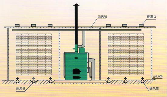 熱風(fēng)式干燥設(shè)備工作原理是利用燃燒產(chǎn)生的熱能,加熱窯內(nèi)的空氣,由熱風(fēng)爐頂部主風(fēng)機(jī)將窯內(nèi)的空氣通過管道吸入爐體,將空氣加熱。再通過管道,送入窯內(nèi),由窯內(nèi)的循環(huán)風(fēng)機(jī)不斷的循環(huán)對(duì)窯內(nèi)的木材均勻加熱。木材干燥過程中如需要蒸汽,可由熱風(fēng)爐內(nèi)的蒸汽發(fā)生器提供,如果是一爐兩房或多房時(shí),管道上裝有插閥,通過插閥的調(diào)節(jié)來控制窯內(nèi)的溫度。在干燥的過程中,由于木材要進(jìn)行排濕,在窯頂上留有排濕孔(根據(jù)地區(qū)而定)和裝有抽濕機(jī),用來調(diào)節(jié)排濕的快慢.